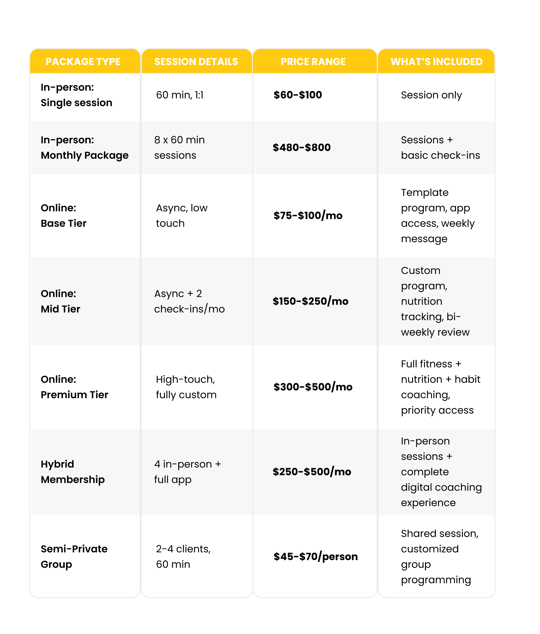 - Personal Training Pricing Models